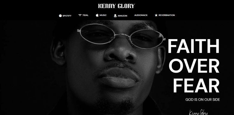 A new one page website layout and design was hand-crafted on our one page website service Boulevardz with 1 revision. Links to all available streaming platforms where the artist's music is available was created as well as a showcase to current and all previous albums. Color palettes of black, white, navy and blue were chosen. The artist's website will be updated with all upcoming shows, merchandise and ambassador programs as they are made available.